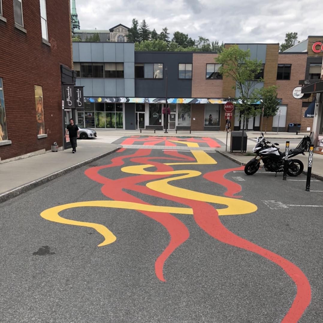 Projets collectifs Voici quelques projets collectifs récents : J’ai mon Asphalt’(cliquez pour plus d’infos) Murale Relais pour la vie Murale Grand-Mère Murale Trois-Rivières(Marie-Michelle Dupuis) Murale Le cycliste et sa ville(Pascal Blanchet) Marquage au solSiurpente&shell